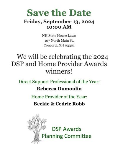CSNI is partnering with other community organizations including the NH Council on Developmental Disabilities to celebrate the NH Direct Support Professional of the year and the NH Home Provider of the year! Please join us in celebrating the honorees and all Direct Support Professionals during Direct Support Professional Appreciation Week, September 8-14, 2024.