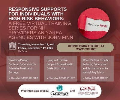 Responsive Supports for Individuals with High-Risk Behaviors: A Free Virtual Training Series for NH Providers and Area Agencies with John Finn